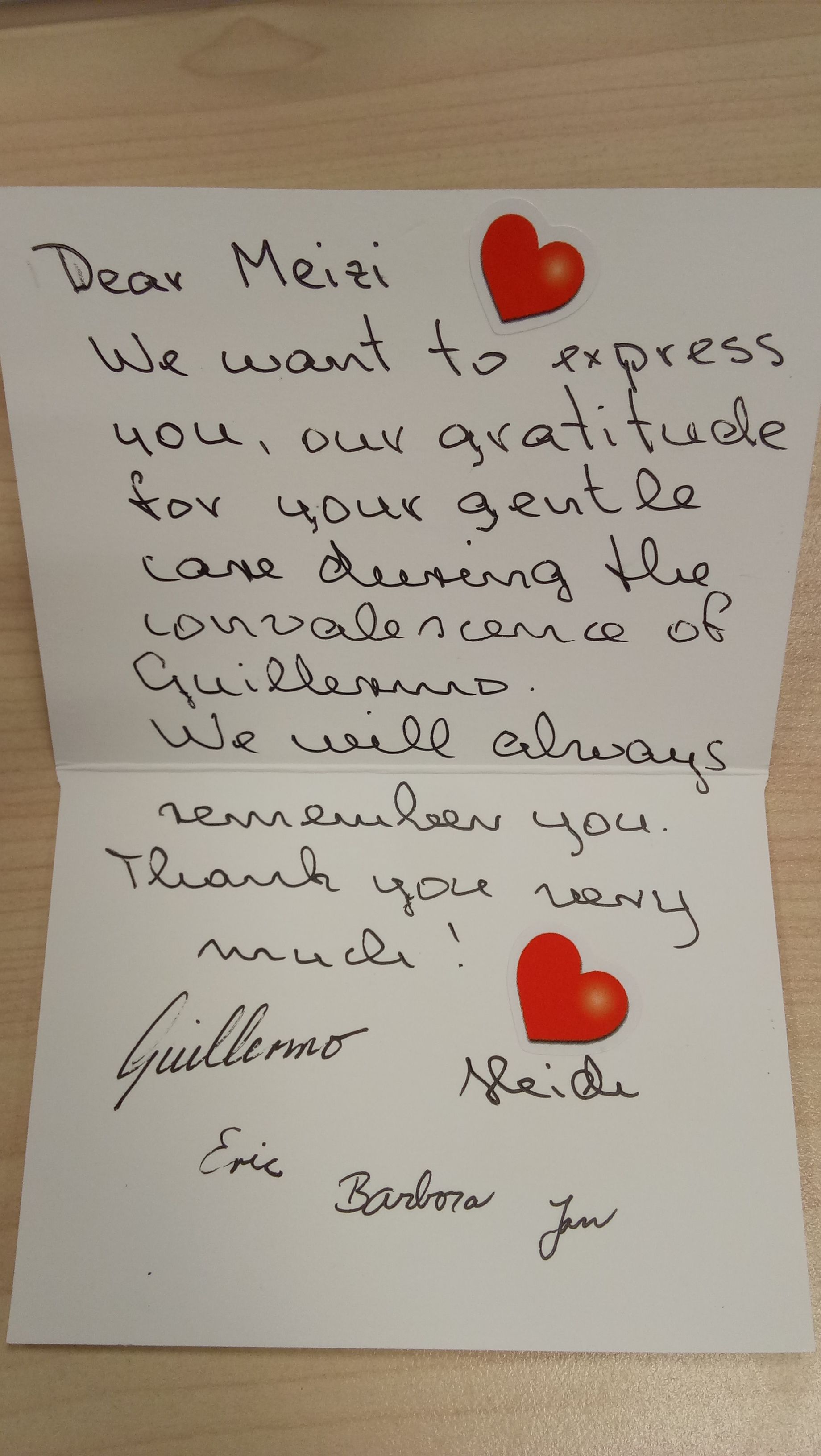 Hernandez給消化科姬美子醫(yī)生的感謝信