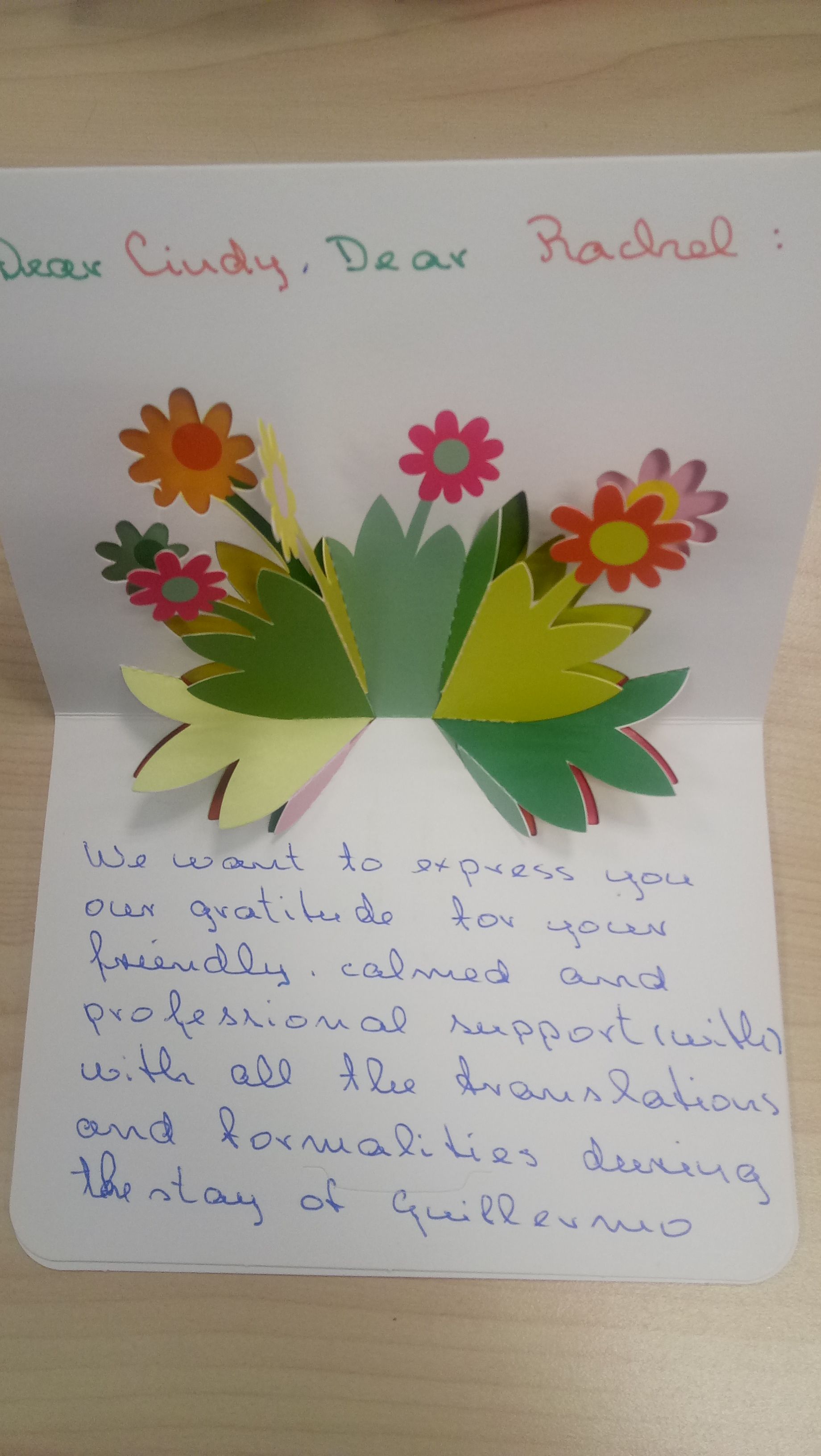 Hernandez給特需醫(yī)療部和國(guó)際交流部工作人員的感謝信