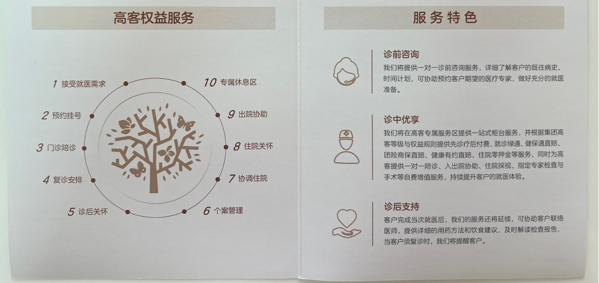 診中實(shí)現(xiàn)一站式服務(wù),滿足高客在院的就醫(yī)需求,并提供先診療后付費(fèi)和優(yōu)先就診等服務(wù)。