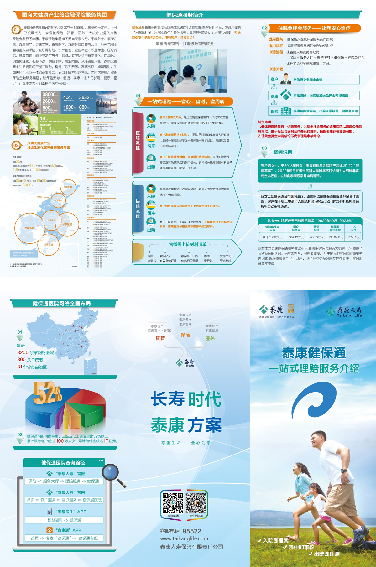 健保通是泰康人壽借助互聯(lián)網(wǎng)技術(shù)推廣的一站式理賠優(yōu)化項(xiàng)目。2016年11月,“健保通”與泰康仙林鼓樓醫(yī)院實(shí)現(xiàn)系統(tǒng)對(duì)接,完成泰康保險(xiǎn)集團(tuán)體系內(nèi)醫(yī)險(xiǎn)直賠服務(wù)無(wú)縫連接,實(shí)現(xiàn)對(duì)客戶(hù)的一站式、全過(guò)程的醫(yī)療費(fèi)用報(bào)銷(xiāo)服務(wù)。客戶(hù)住院期間,泰康人壽的工作人員將對(duì)客戶(hù)進(jìn)行溫馨探視;在客戶(hù)出院時(shí)即由醫(yī)院扣減保險(xiǎn)公司應(yīng)賠付的醫(yī)療費(fèi)用,客戶(hù)僅需支付剩余的醫(yī)療費(fèi)用即可出院。此產(chǎn)品在確??蛻?hù)獲得高品質(zhì)泰康醫(yī)療服務(wù)的基礎(chǔ)上,大大簡(jiǎn)化了人身保險(xiǎn)理賠流程,解決了客戶(hù)的理賠難問(wèn)題,也緩解了客戶(hù)的醫(yī)療經(jīng)濟(jì)負(fù)擔(dān)。